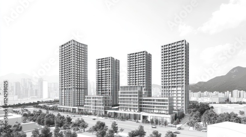 © mas, Obraz premium Modern high-rise residential buildings in a city setting.