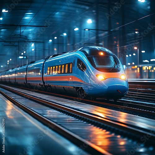 © Two, Fototapeta premium Modern high-speed train at a station at night.