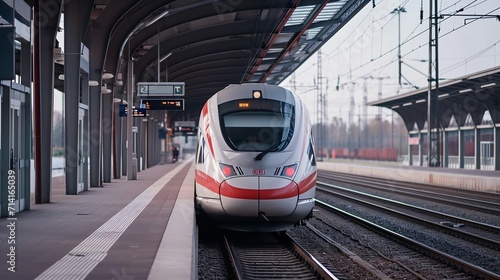 Fototapeta premium Modern High-Speed Train at the Station at Sunset. Generative ai