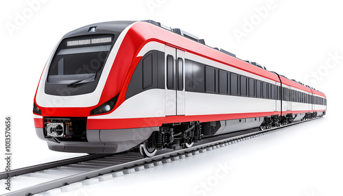 © Mahmud, Naklejka premium Modern HighSpeed Passenger Train on Tracks Isolated on White Background design