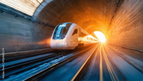 Fototapeta premium Modern HighSpeed Train in Tunnel with Sunlight and Dynamic Motion