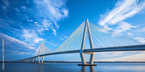 © Ajay, Naklejka premium modern highway overpass against a vibrant blue sky with scenic white clouds.