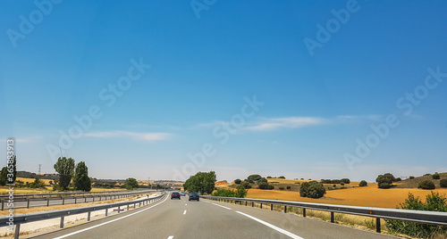 © jcanofoto, Fototapeta premium Modern highway road in Spain between Valencia and Madrid