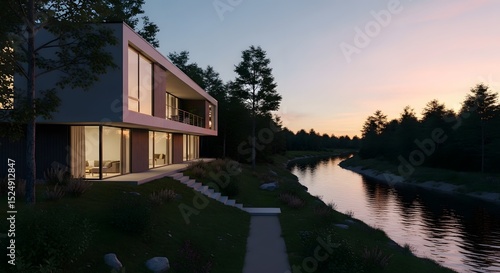 © egavirgian art, Obraz premium Modern Home by River