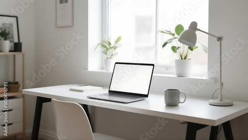 © riedoak, Obraz premium Modern home office workspace with minimalist desk