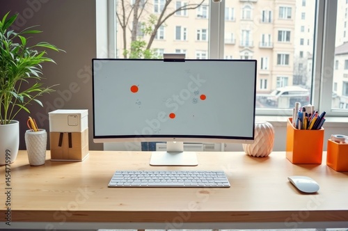© Beniamin, Obraz premium Modern home workspace with ultrawide monitor and minimalist decor