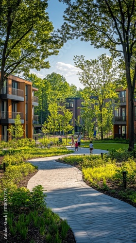 Naklejka premium Modern homes with green paths for families enjoying nature