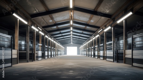 Obraz premium Modern Horse Stable Interior: Architectural Design of an Equestrian Facility