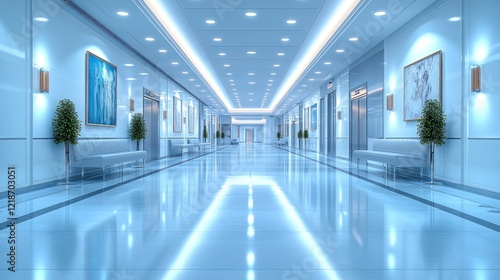 Fototapeta premium Modern hospital corridor, elevator, art, lighting