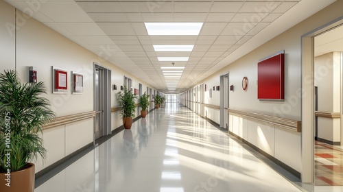 © วรรณภา มะโนศรี, Obraz premium Modern Hospital Corridor with Natural Light