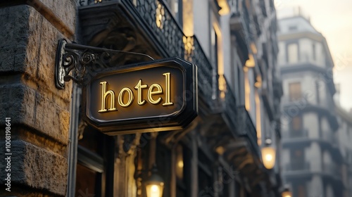 © BG_Illustrations, Obraz premium Modern Hotel Building with Clear Blue Sky