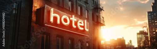 © BG_Illustrations, Obraz premium Modern Hotel Building with Clear Blue Sky