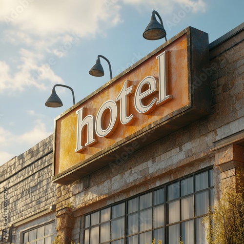 © BG_Illustrations, Obraz premium Modern Hotel Building with Clear Blue Sky