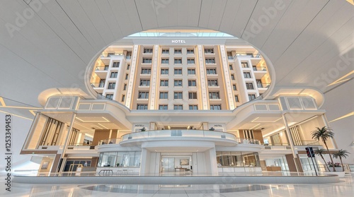 © Nadiya, Obraz premium Modern hotel lobby with a grand architectural design and open space
