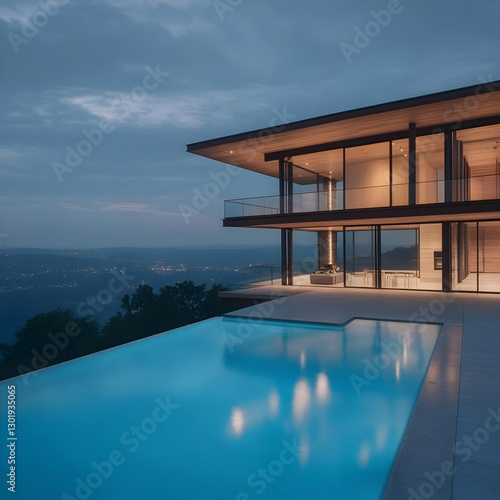 © Siasart Stock, Fototapeta premium Modern House Dusk 3D Illustration