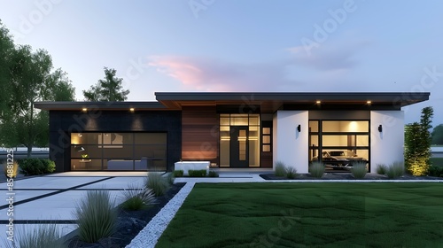 © duyina1990, Fototapeta premium Modern House Exterior at Dusk
