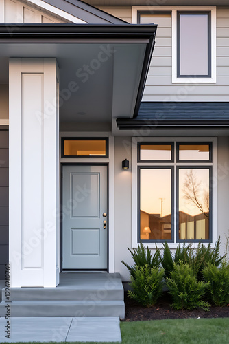 Fototapeta premium Modern House Exterior: Contemporary Home Design with Grey Facade and...