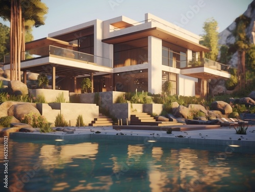 Fototapeta premium Modern House exterior design generative ai