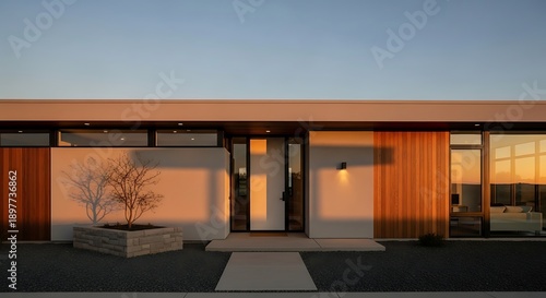 © Titus, Fototapeta premium Modern house exterior with warm lighting.