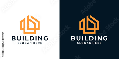 Obraz premium Modern house logo design template. Home building with initial letter b...