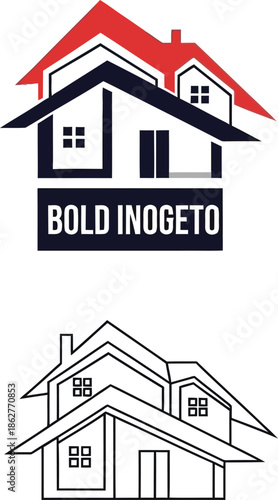 © Netbd, Fototapeta premium Modern house logo with city buildings and windows