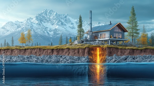 Fototapeta premium Modern House on a Cliffside with Geothermal Energy Source