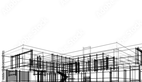 © Yurii Andreichyn, Obraz premium Modern house sketch architectural 3d rendering