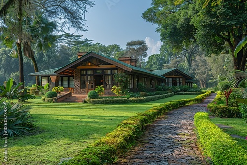 Fototapeta premium Modern House Surrounded by Lush Greenery