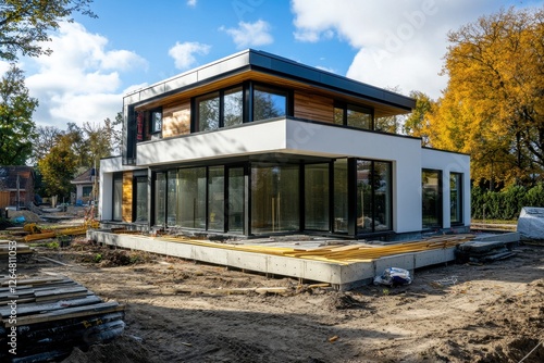 © wpw, Obraz premium Modern house under construction with glass facade
