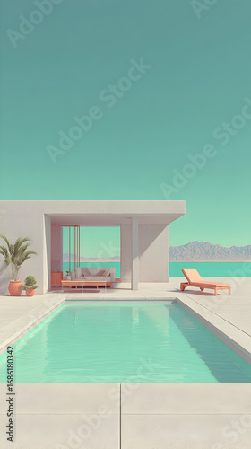 © Putu, Fototapeta premium Modern house with pool and ocean view
