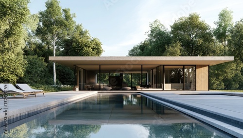 Fototapeta premium Modern house with pool in a forest setting
