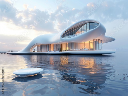 © fanjianhua, Naklejka premium Modern houses by the lake, reflections