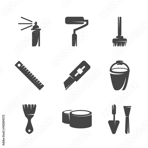 © strilets, Fototapeta premium Modern icons set silhouettes of tools for repair and decoration