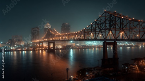 © Huzaifa, Fototapeta premium Modern illuminated city bridge glowing vibrantly under night sky