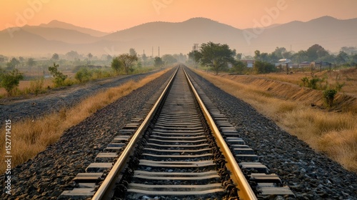 © Chaweewan, Obraz premium Modern Indian rail line extending toward the horizon carrying trade cargo