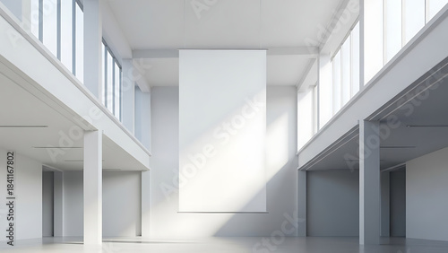 © Siraz, Fototapeta premium Modern Industrial Architecture with Natural Light and Vertical Banner Display