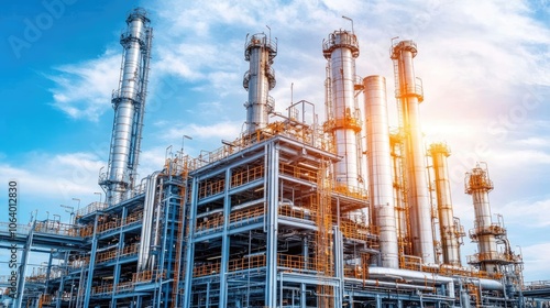 Obraz premium Modern Industrial Complex Against Blue Sky
