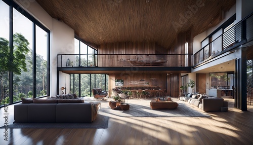 Naklejka premium Modern Industrial Loft with Rustic Charm and Panoramic Views