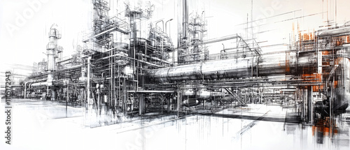 Obraz premium Modern industrial oil refinery with complex metal structures and intricate...