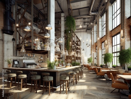 © RPL-Studio, Naklejka premium modern interior bar-cafe. industrial design.