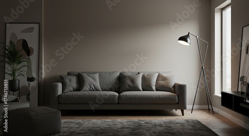 Fototapeta premium Modern interior design living room with sofa lamp and decorative elements
