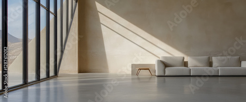 © JuanM, Fototapeta premium Modern interior design showcasing a minimalist living room with natural lighting