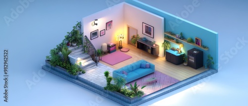 Naklejka premium Modern Interior Design with Cozy Living Space and Plants