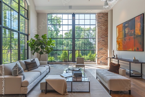 Fototapeta premium Modern Interior of Stylish Living Room ,Wall Mock Up, Frame , Poster with Beautiful Background, 3d render