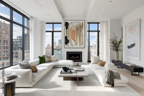 Fototapeta premium Modern Interior of Stylish Living Room ,Wall Mock Up, Frame , Poster with...