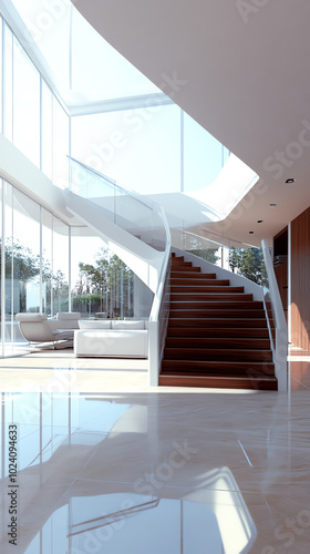 Obraz premium Modern interior with elegant staircase design
