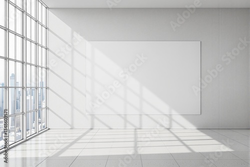 © peshkova, Obraz premium Modern interior with large blank poster on white wall.
