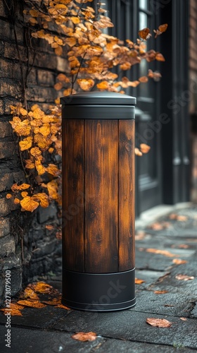 Fototapeta premium Modern Iron Garbage Bin, Black Trash Can on Street, Metal Waste Bin for Mix Trash and Non Recyclable Waste