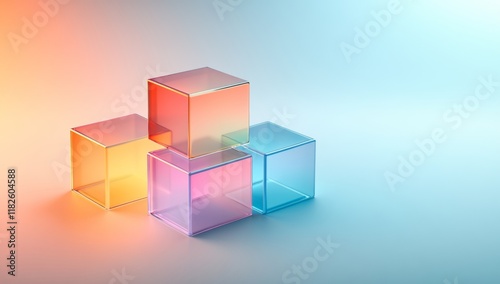 © AI Studio, Fototapeta premium Modern Isometric Blocks and Cubes with Glass-Like Textures