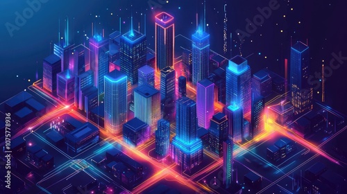 © hanisah, Fototapeta premium Modern isometric city plan 3d location map%3A living houses offices skyscrapers industrial buildings city landmarks